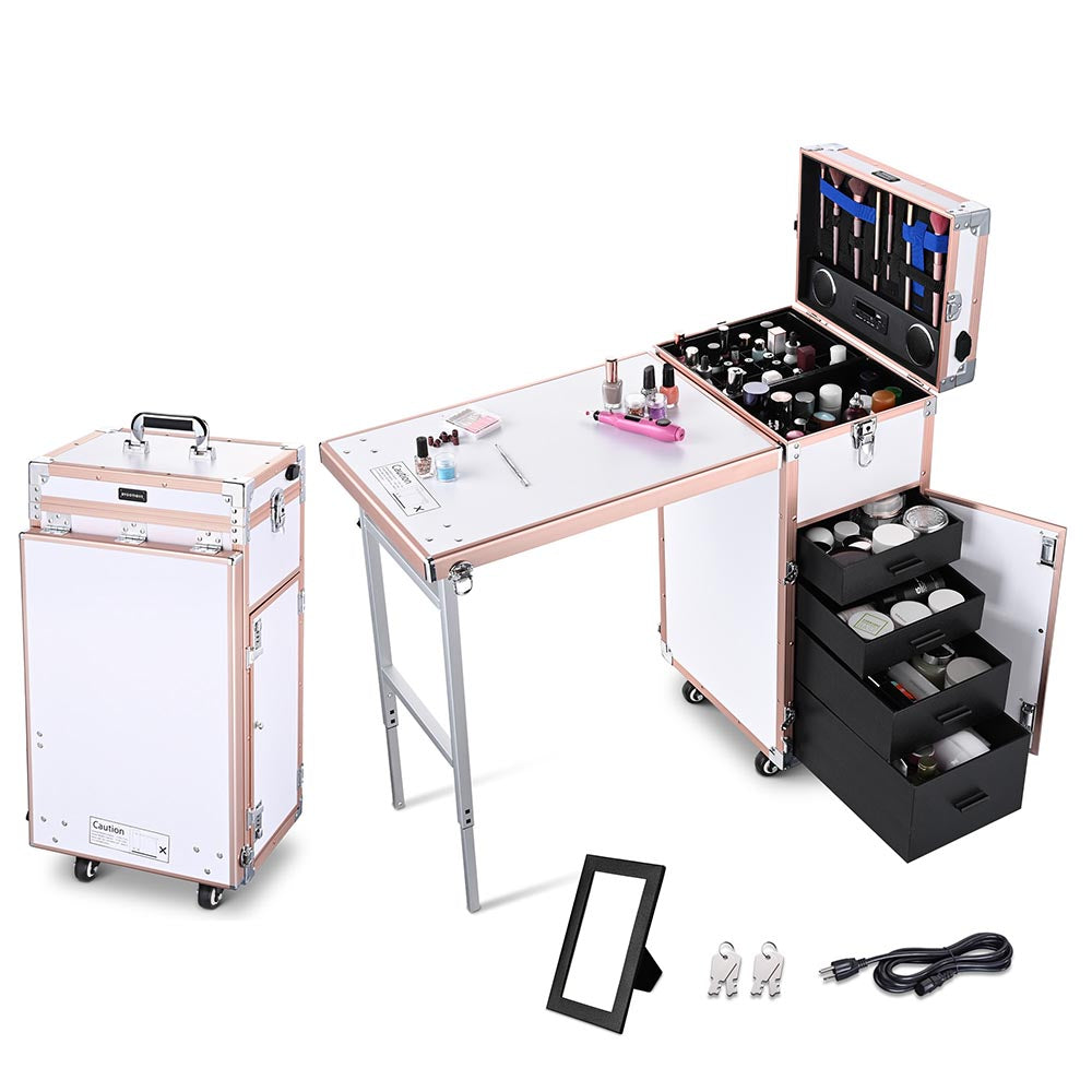 Byootique Nail Table Makeup Station Speaker Drawers Mirror